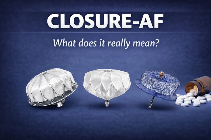 The CLOSURE-AF trial is the first randomized study suggesting worse outcomes of LAA closure compared to medical therapy in high-risk atrial fibrillation patients. Key points: No difference in stroke …